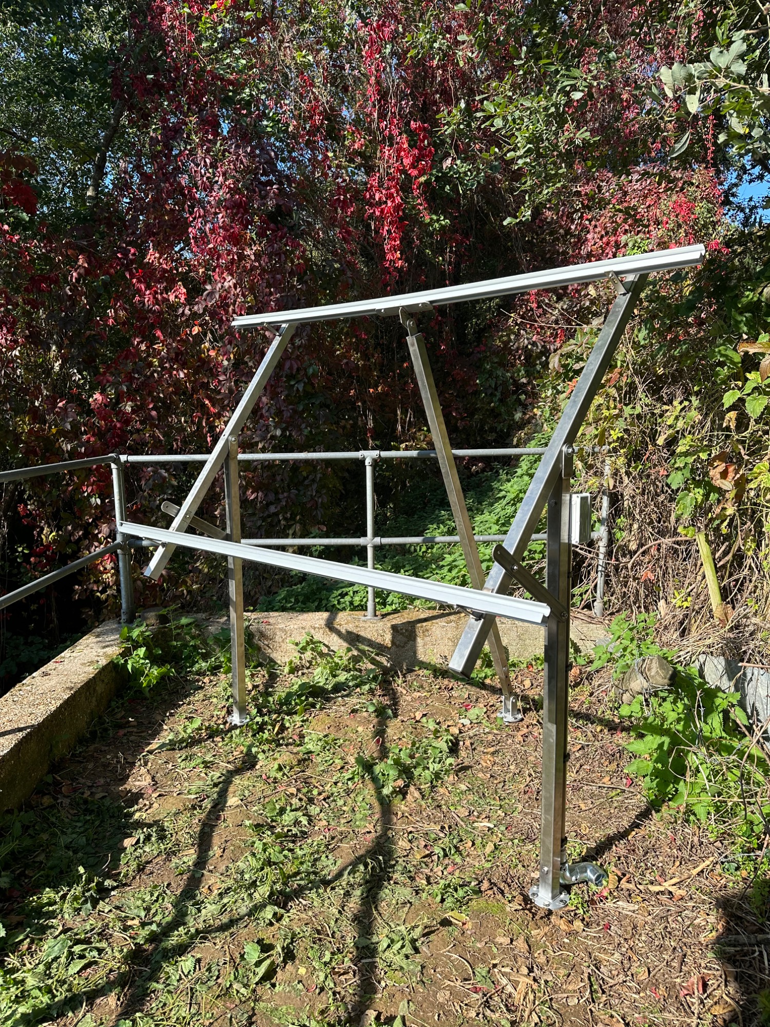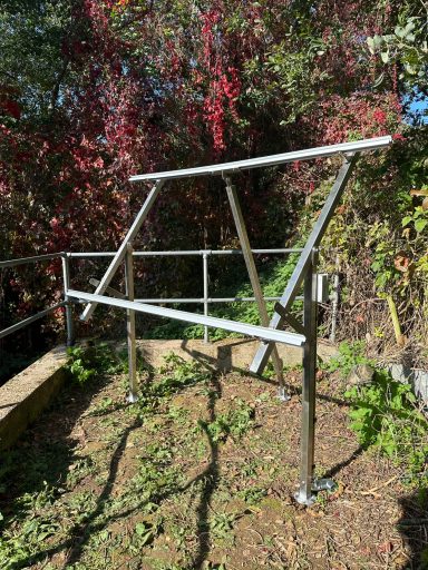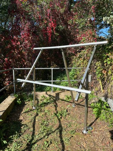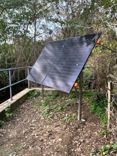 880watt Solar, Bespoke Stainless adjustable mounting, on 3 x 1050mm x 68mm ground screws, Hydrasolar Control Module, Victron MPPT, Victron VRM, Fogstar 460Ah Lifepo4 resilience. Remote Monitoring in the UK.